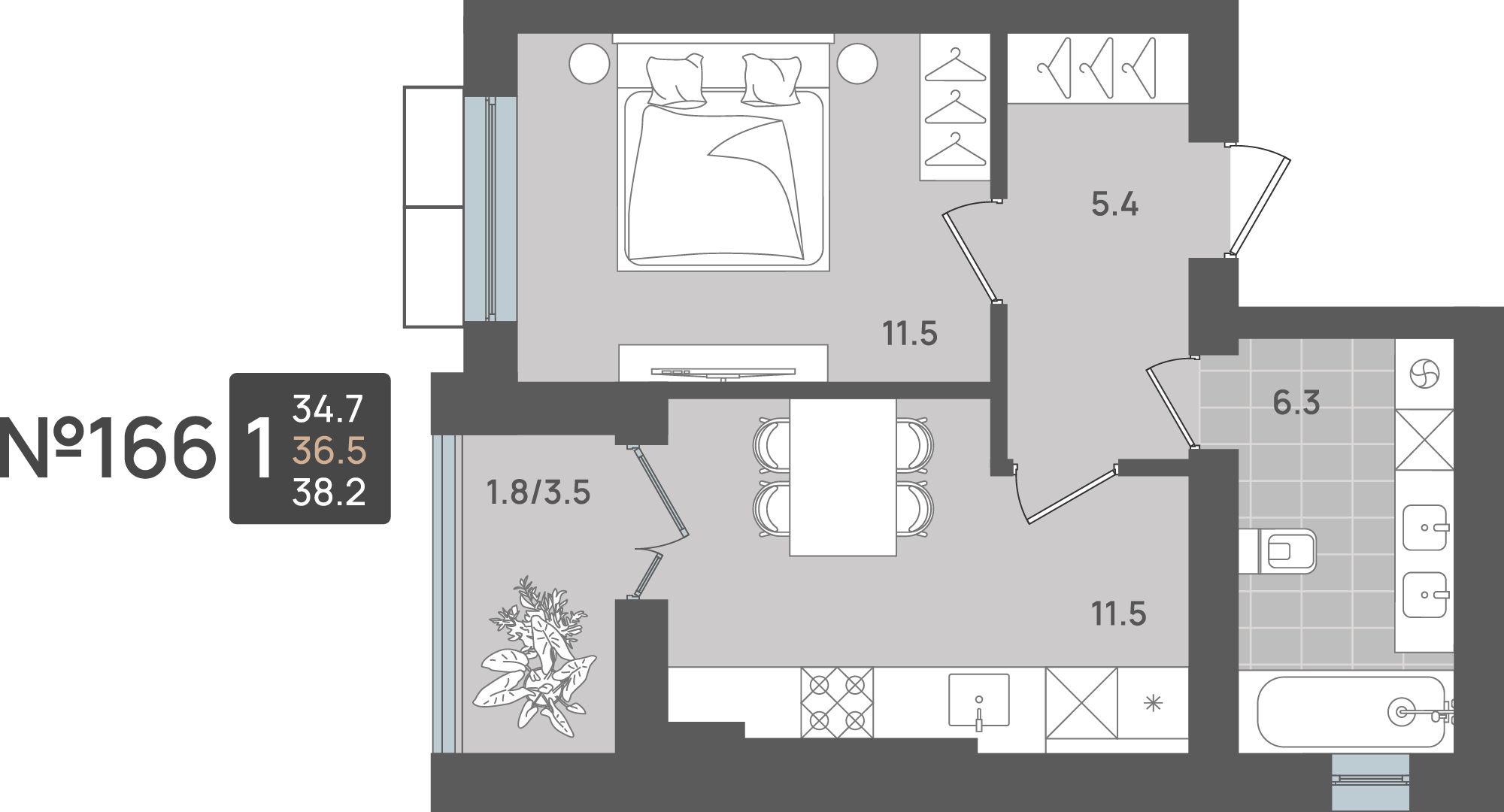 - Площадь - 36.60 м²