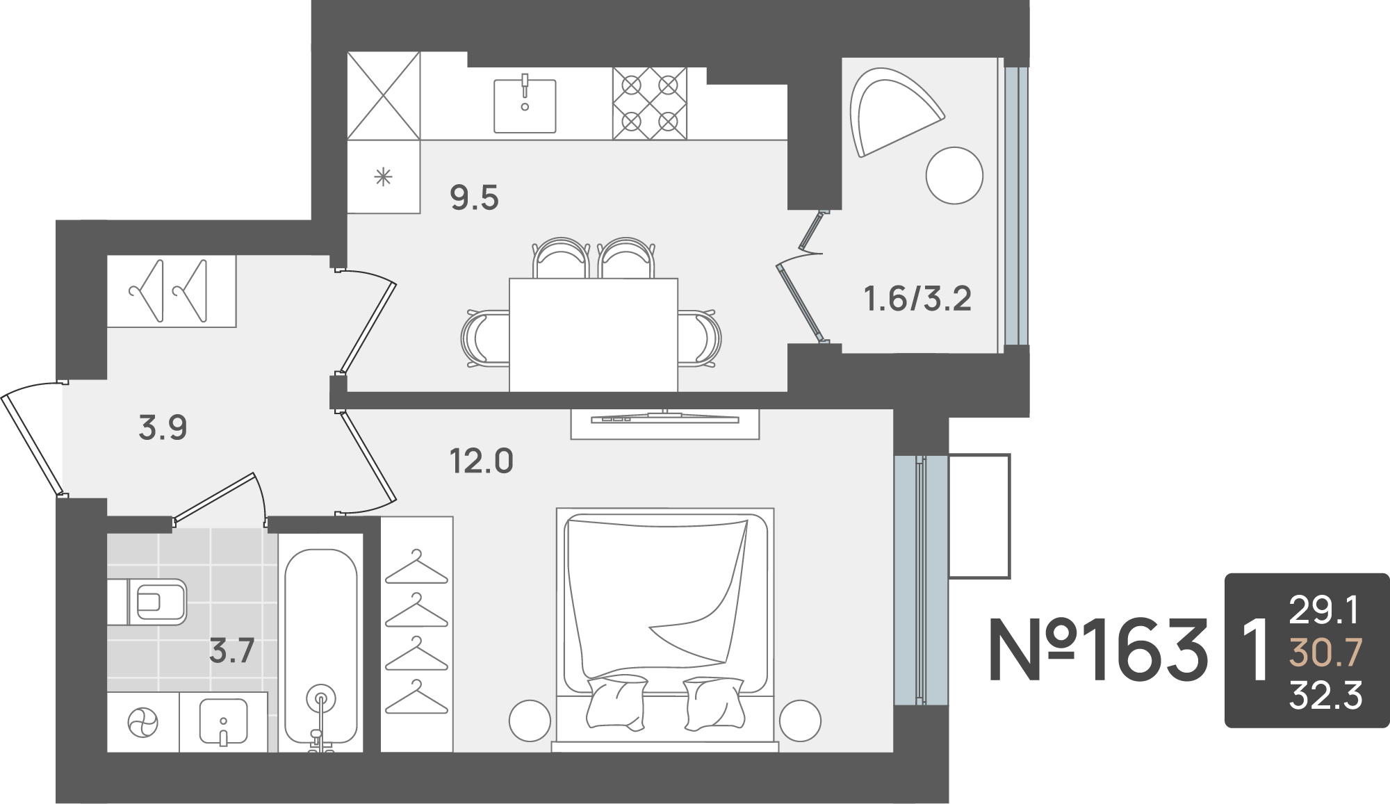 - Площадь - 30.70 м²