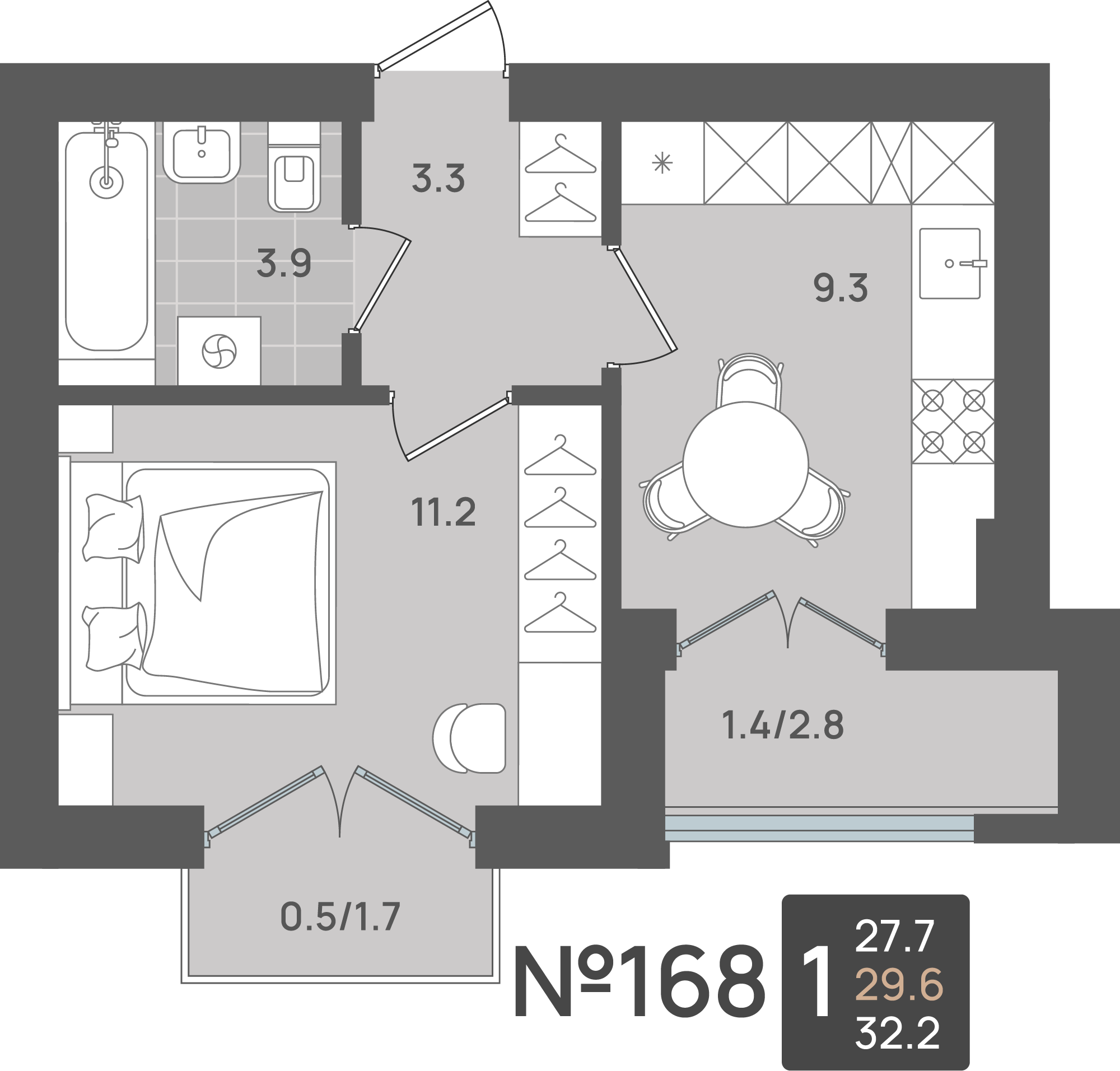 - Площадь - 29.60 м²