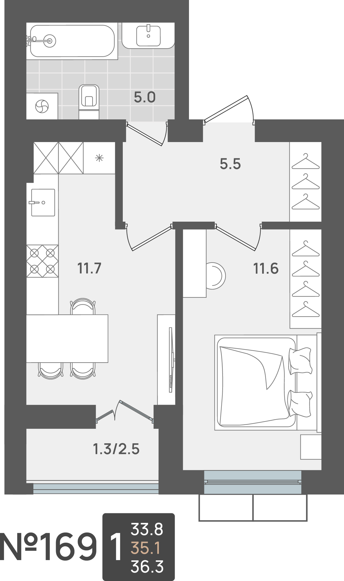 - Площадь - 35.10 м²
