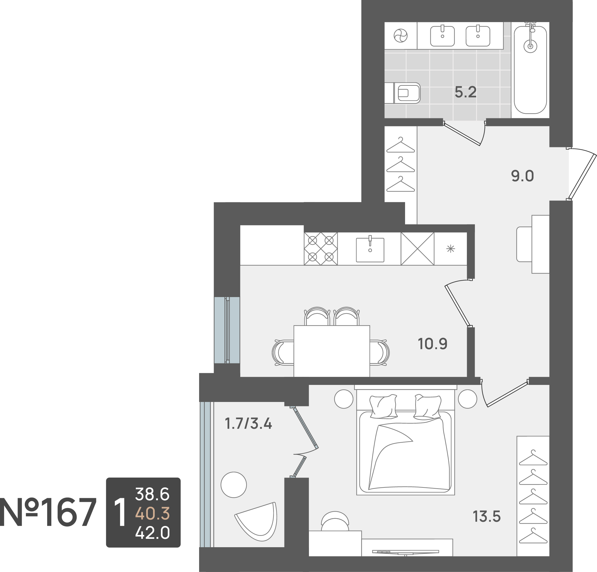 - Площадь - 40.30 м²