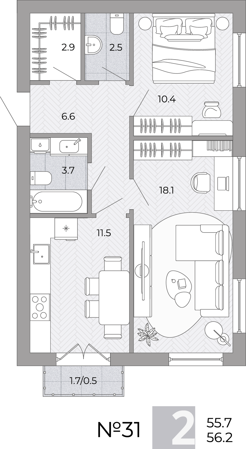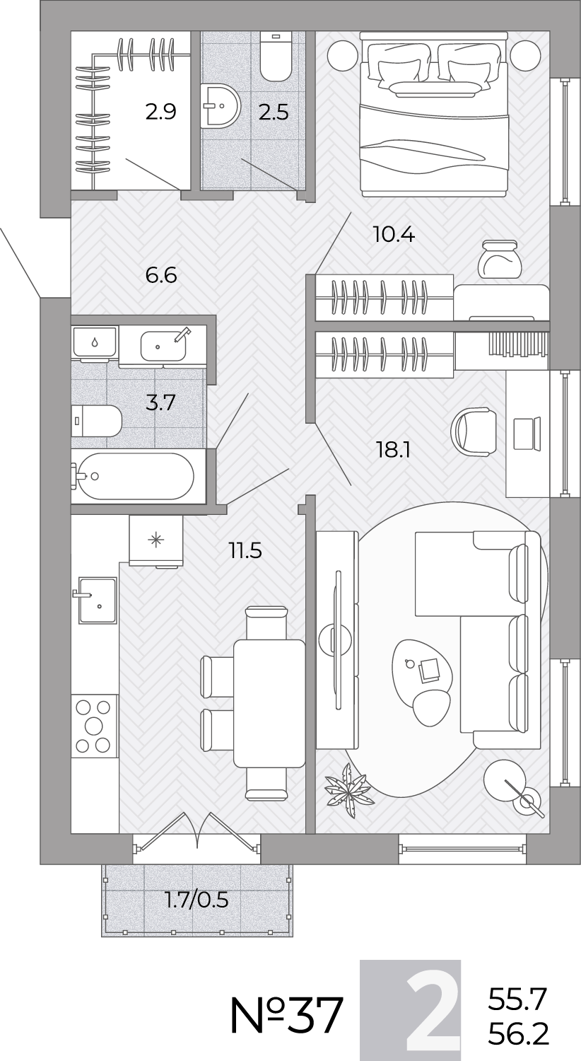- Площадь - 56.10 м²