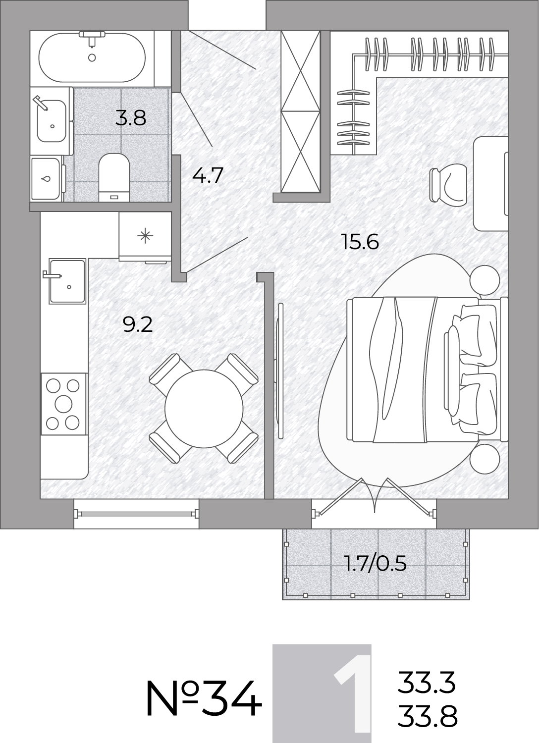 Подробнее- Площадь - 33.70 м²