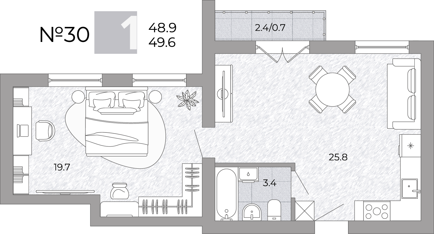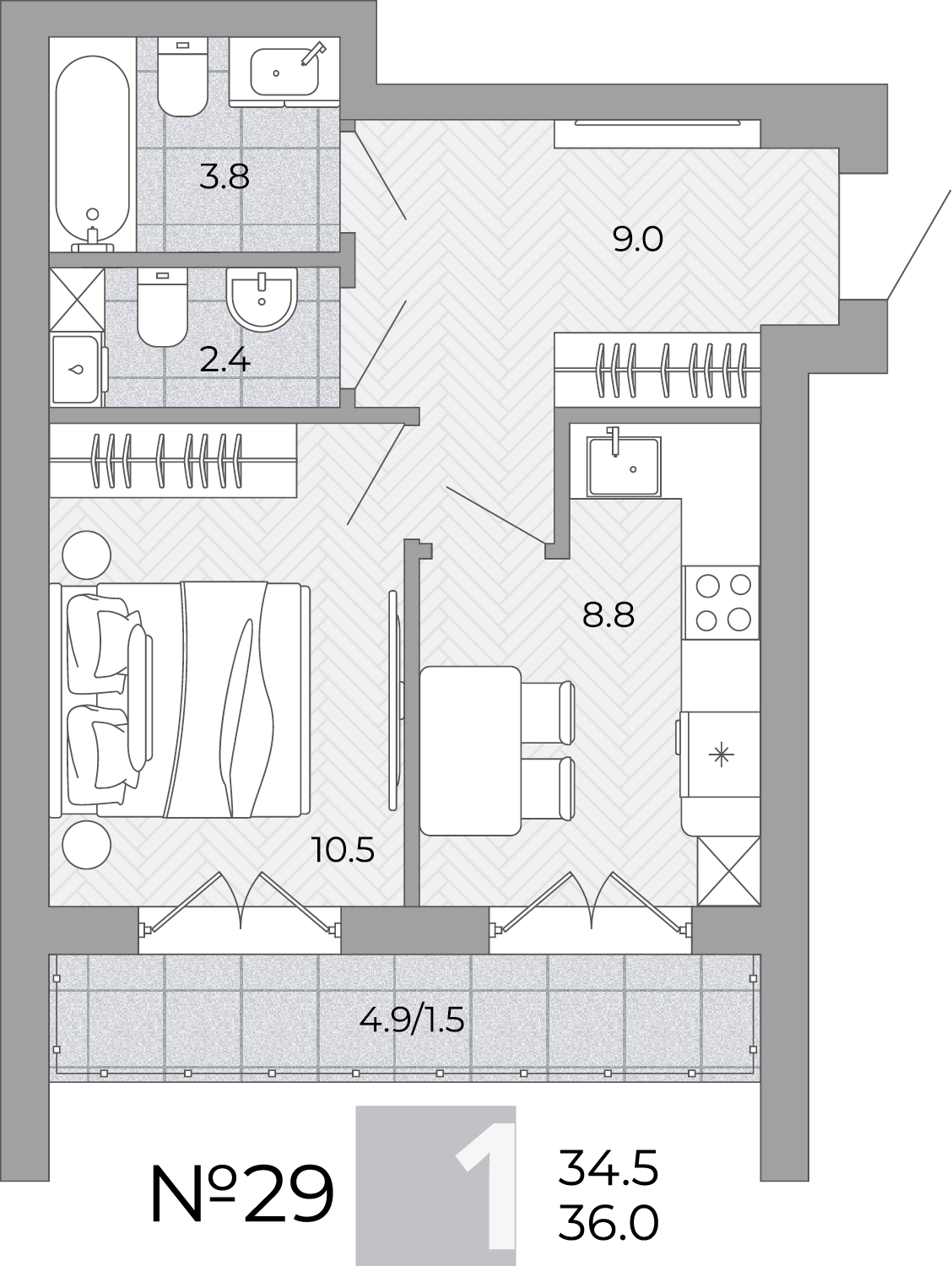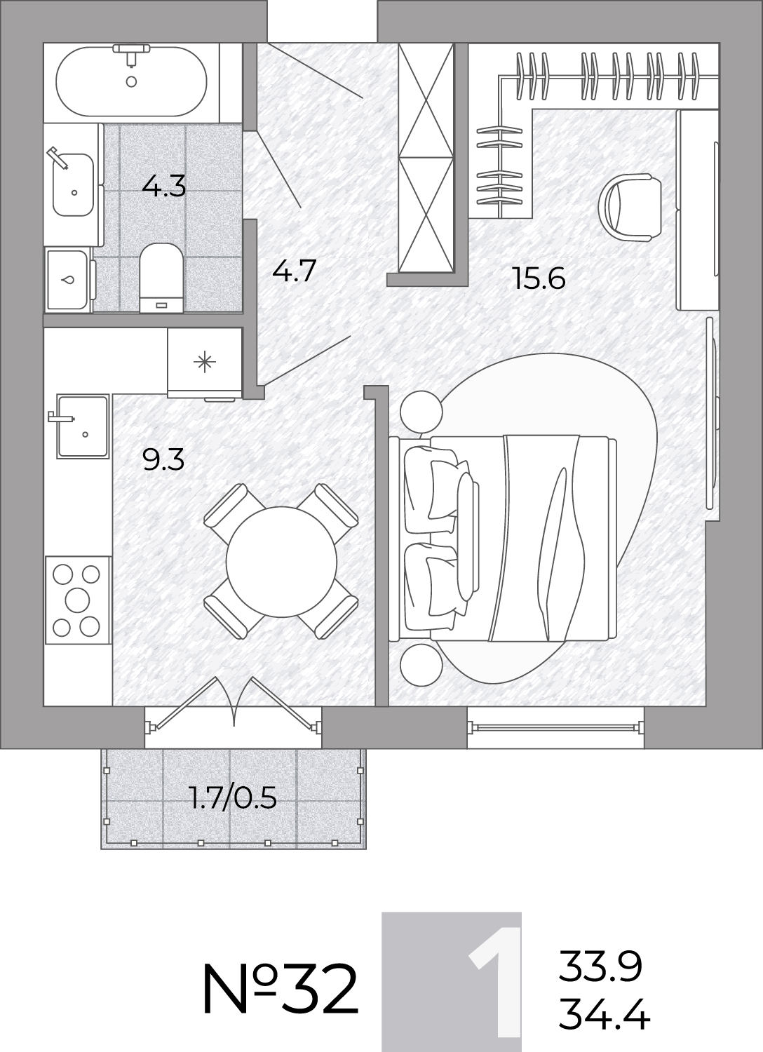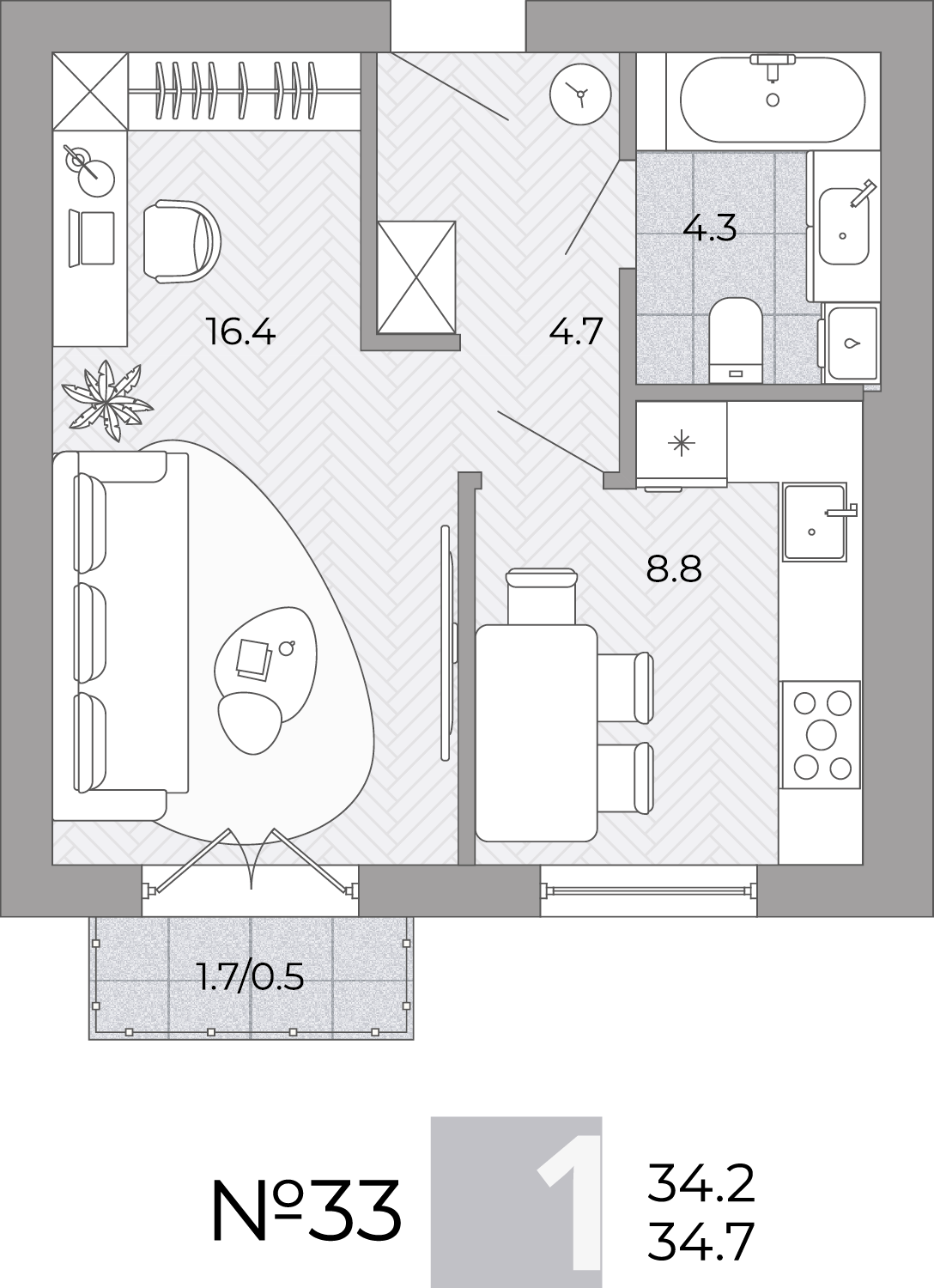 - Площадь - 34.30 м²