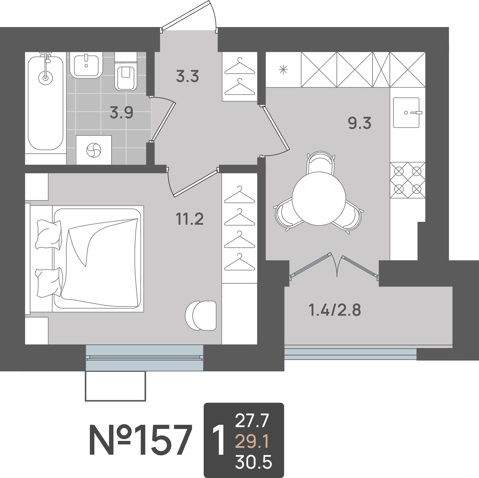 - Площадь - 29.10 м²