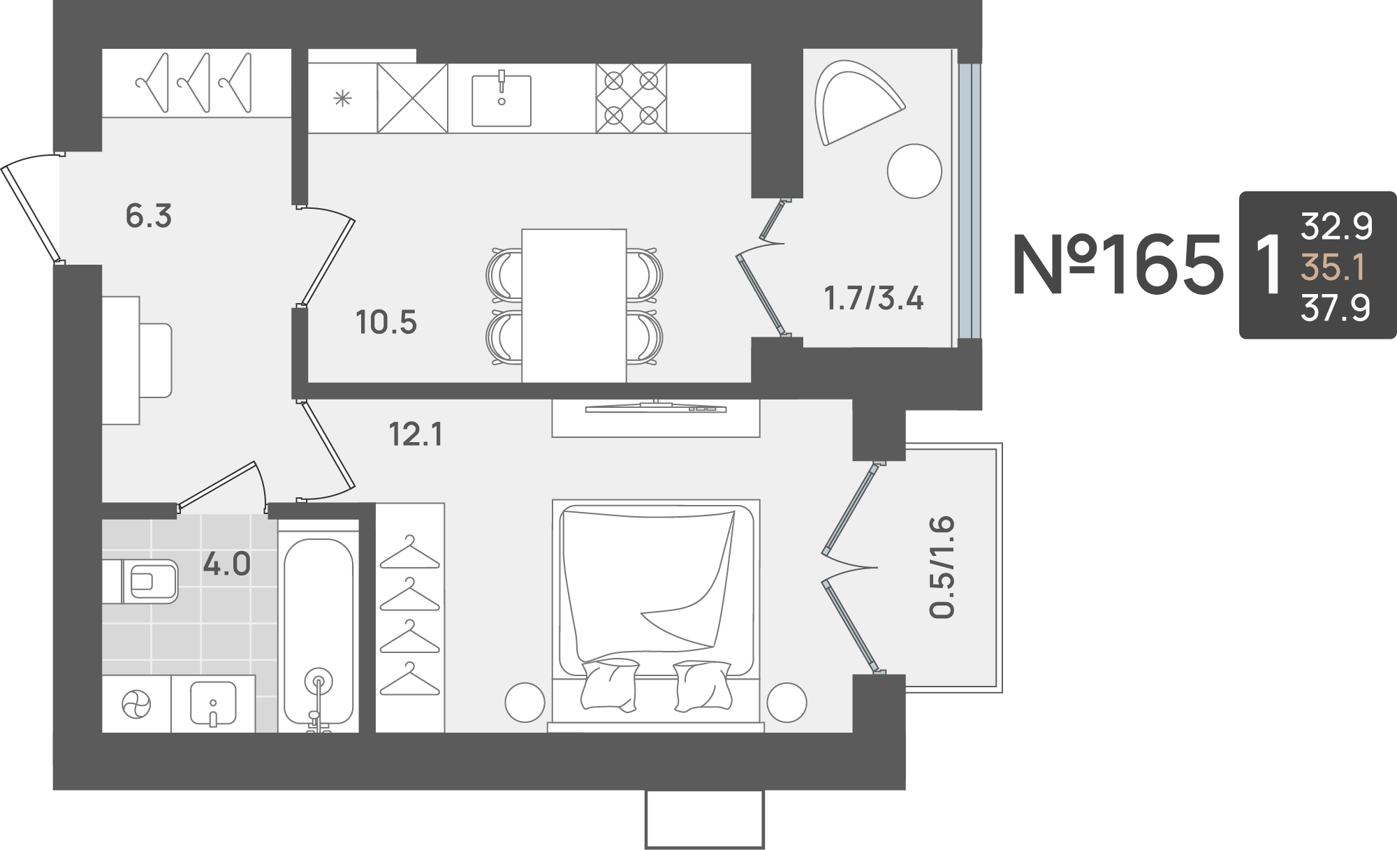 - Площадь - 35.10 м²