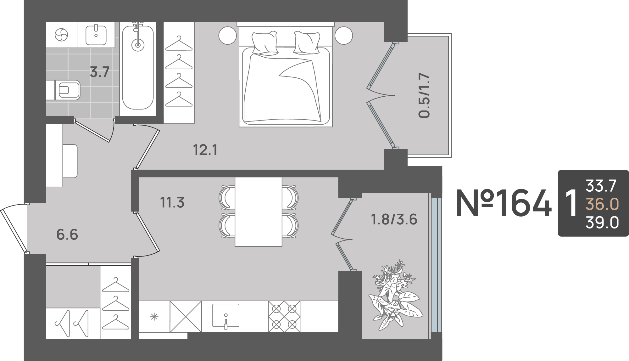 - Площадь - 36.00 м²