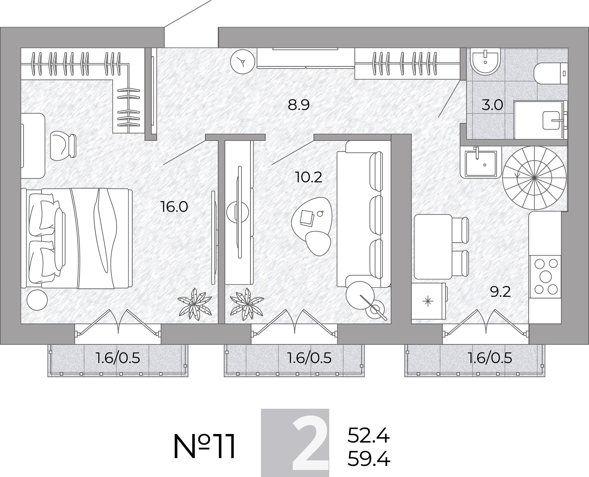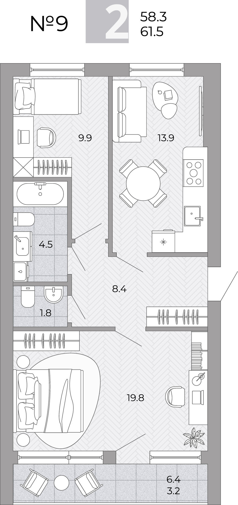 - Площадь - 59.40 м²