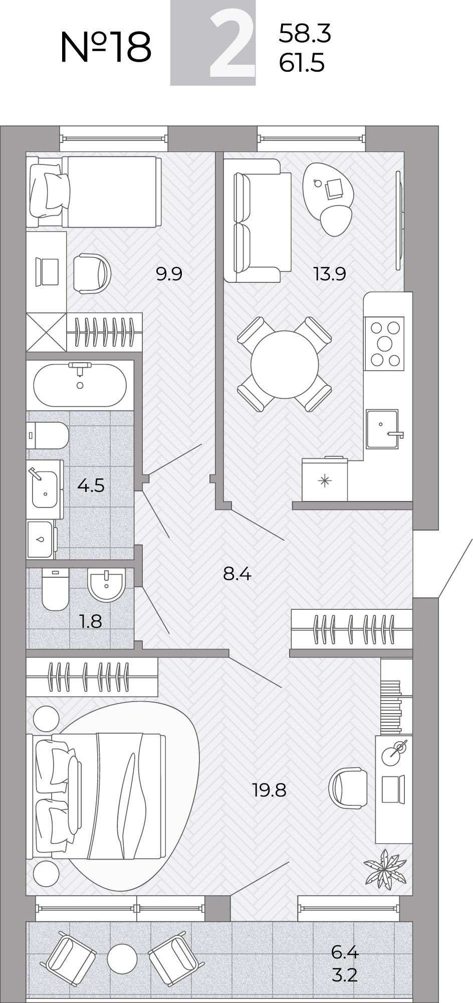 2–комнатная квартира