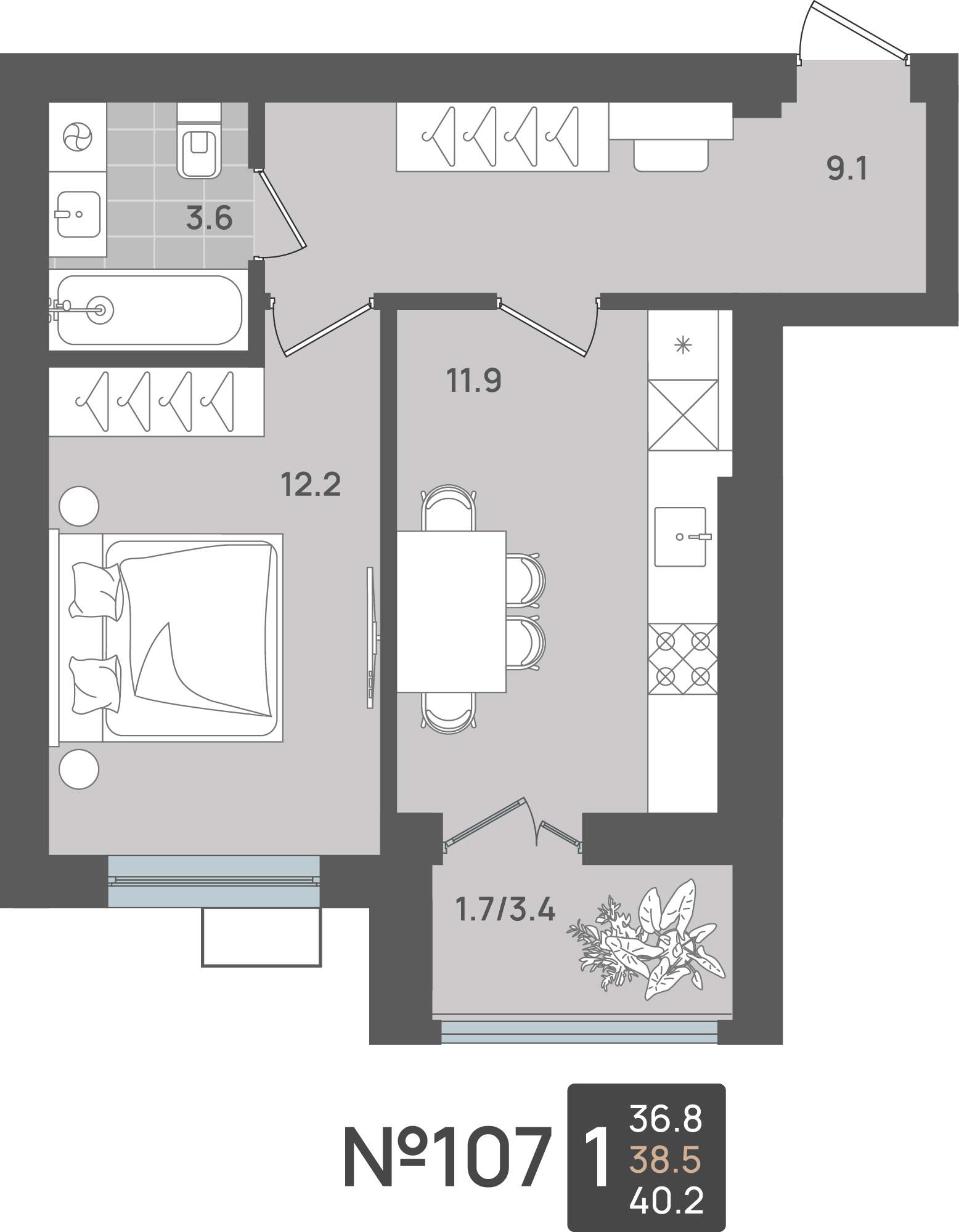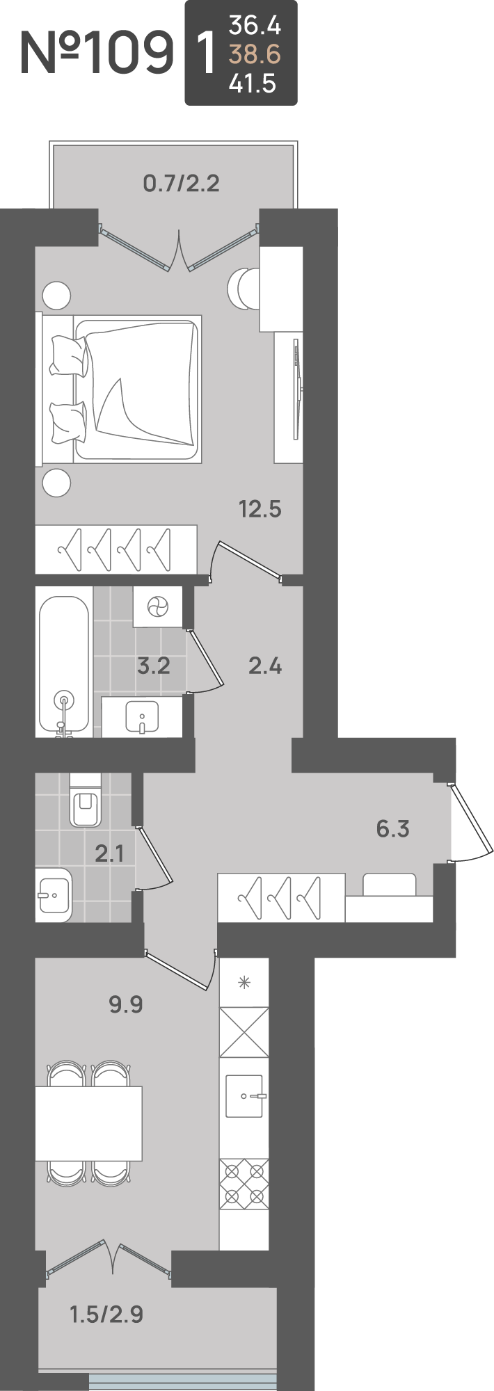 - Площадь - 38.60 м²