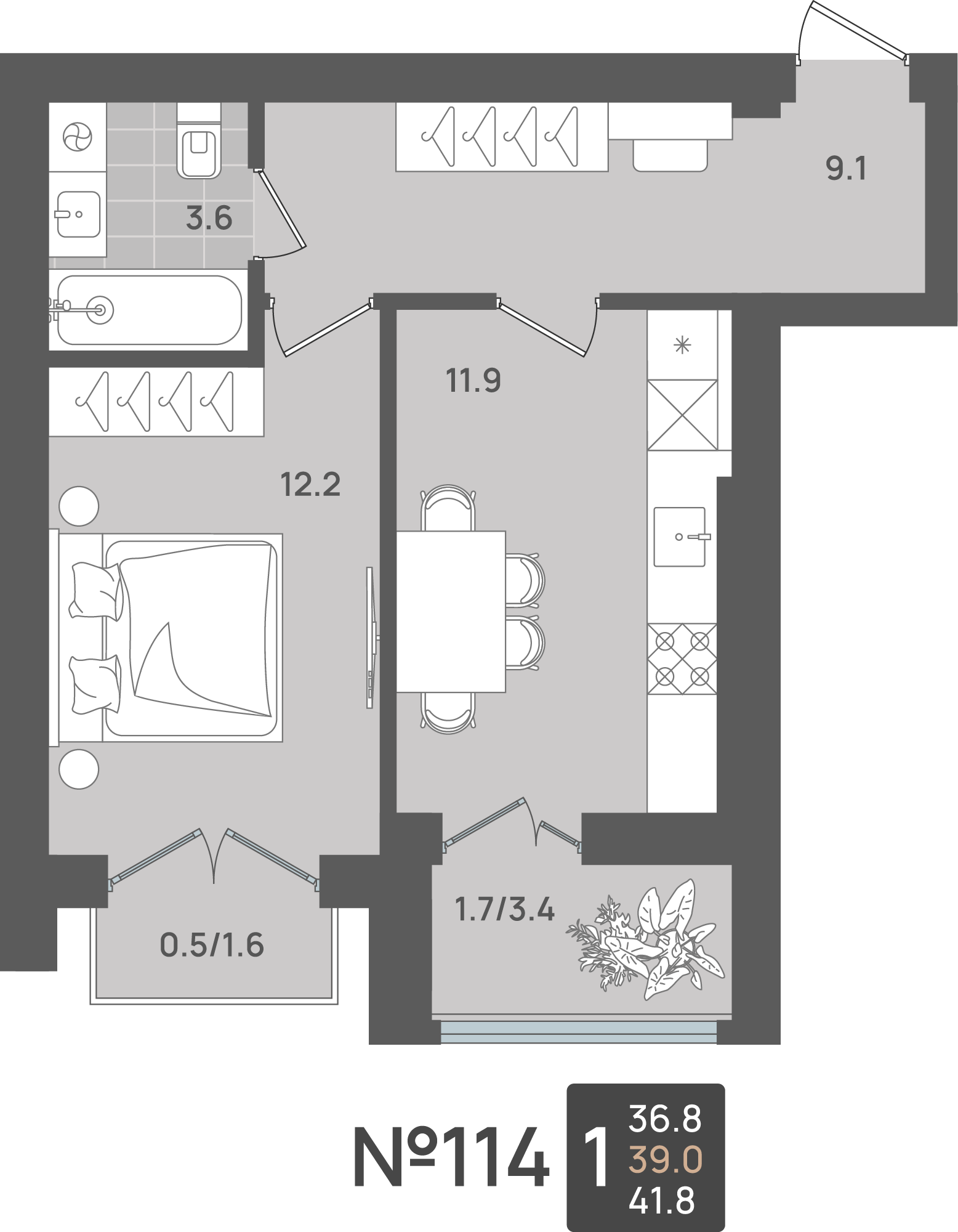 - Площадь - 39.00 м²