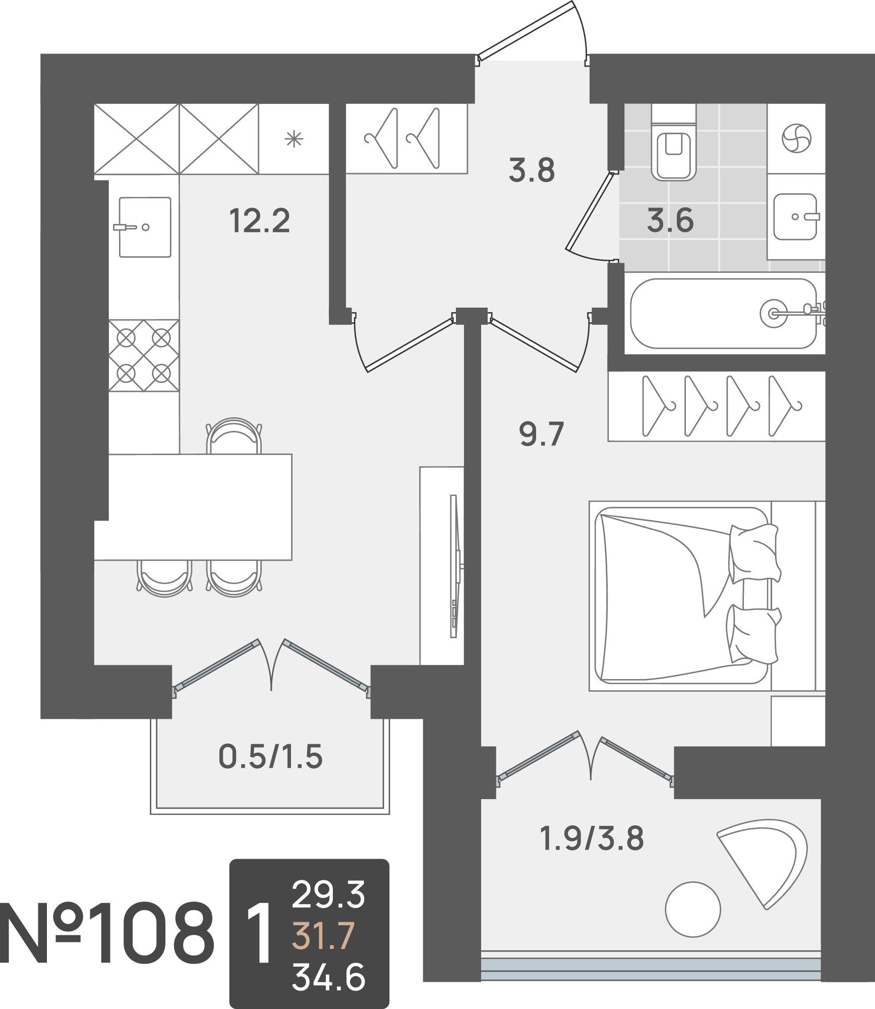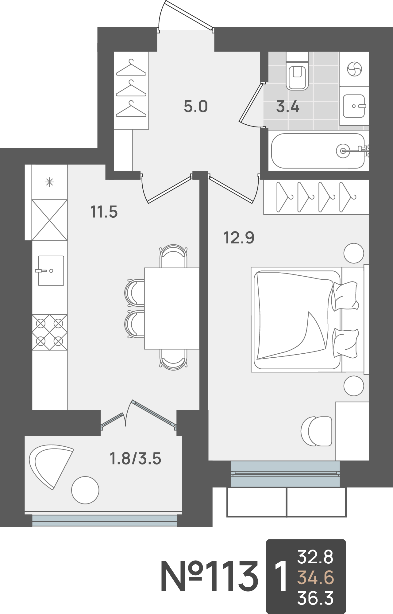 - Площадь - 34.60 м²