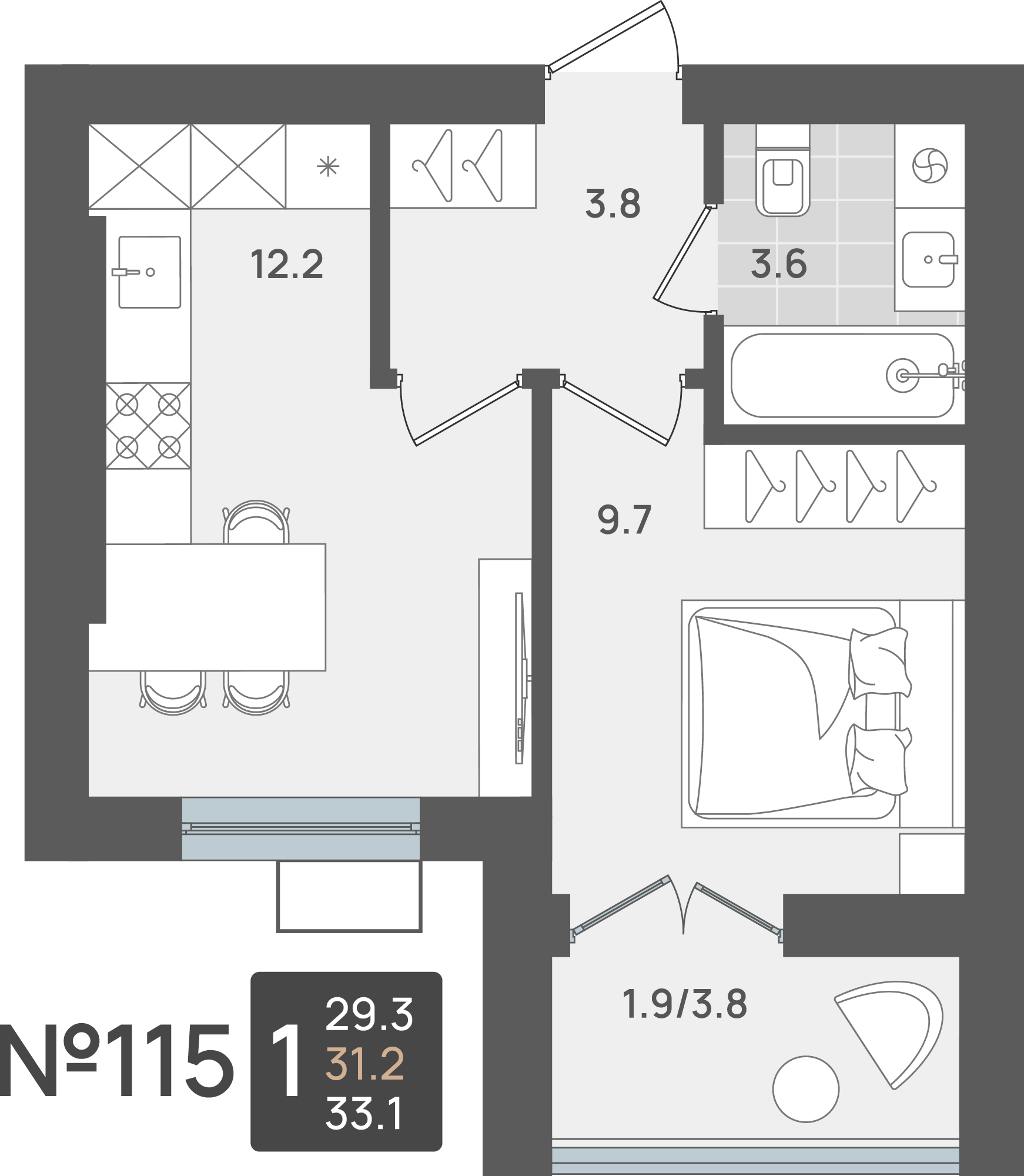 - Площадь - 31.20 м²