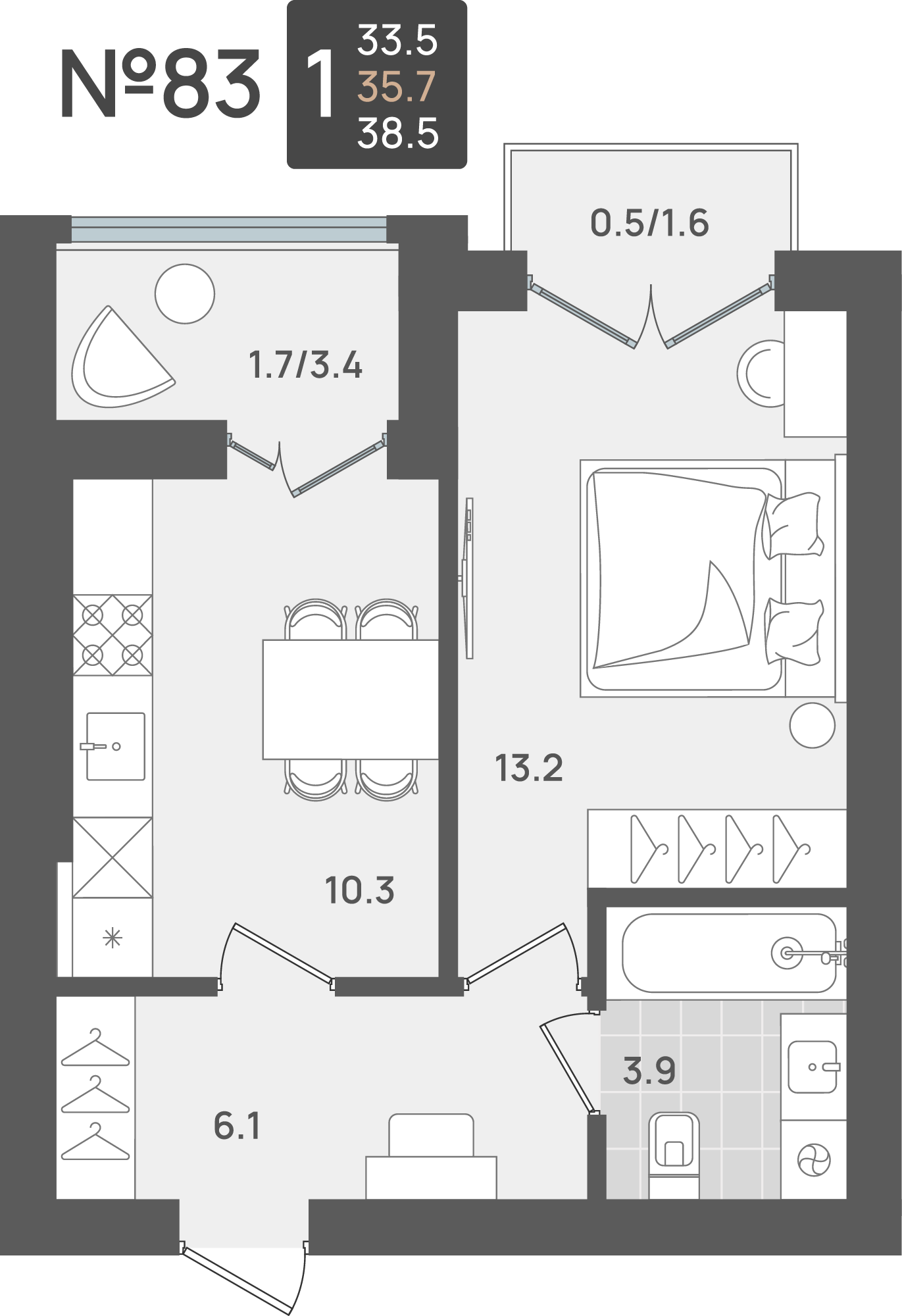 • Площадь - 35.70 м²