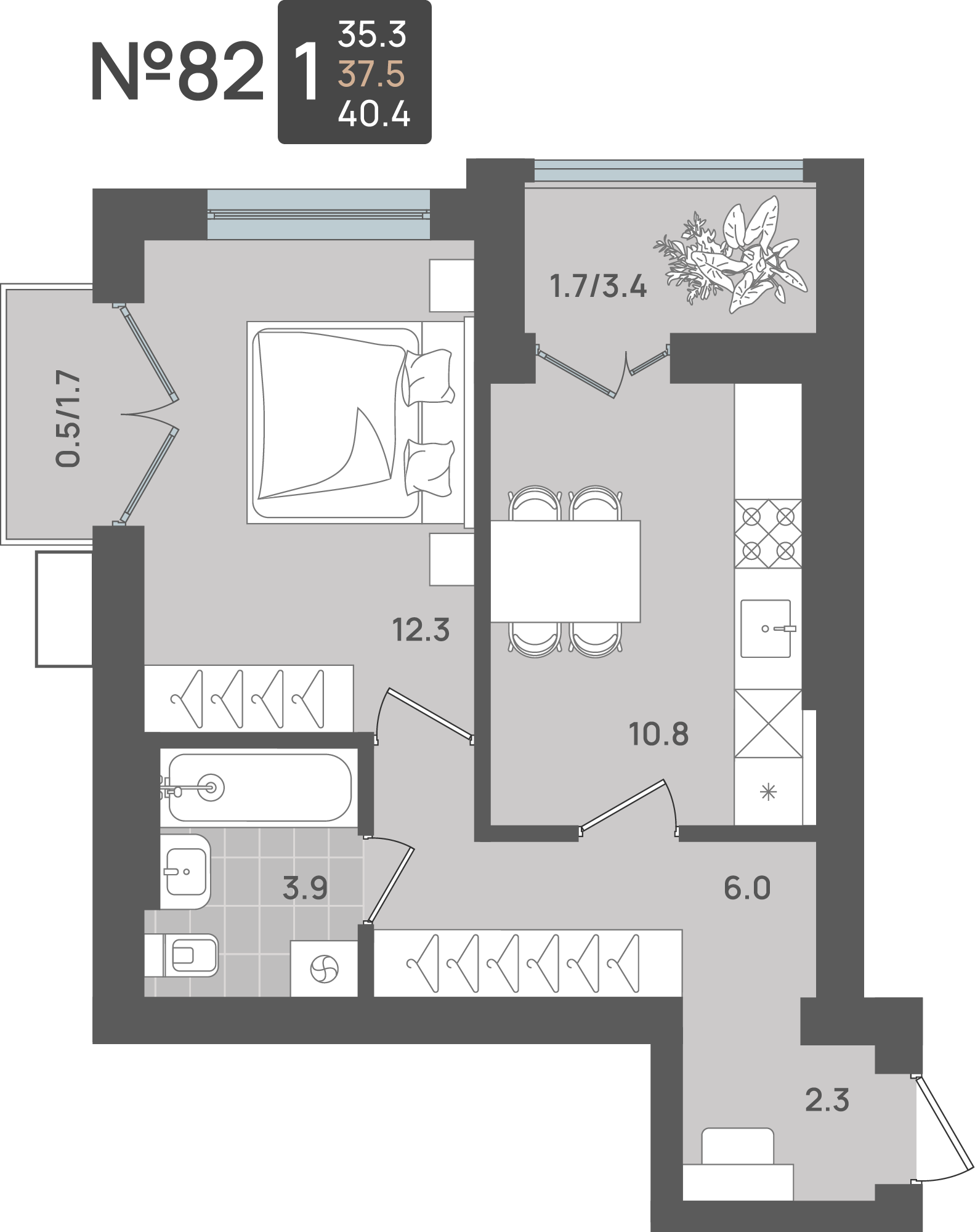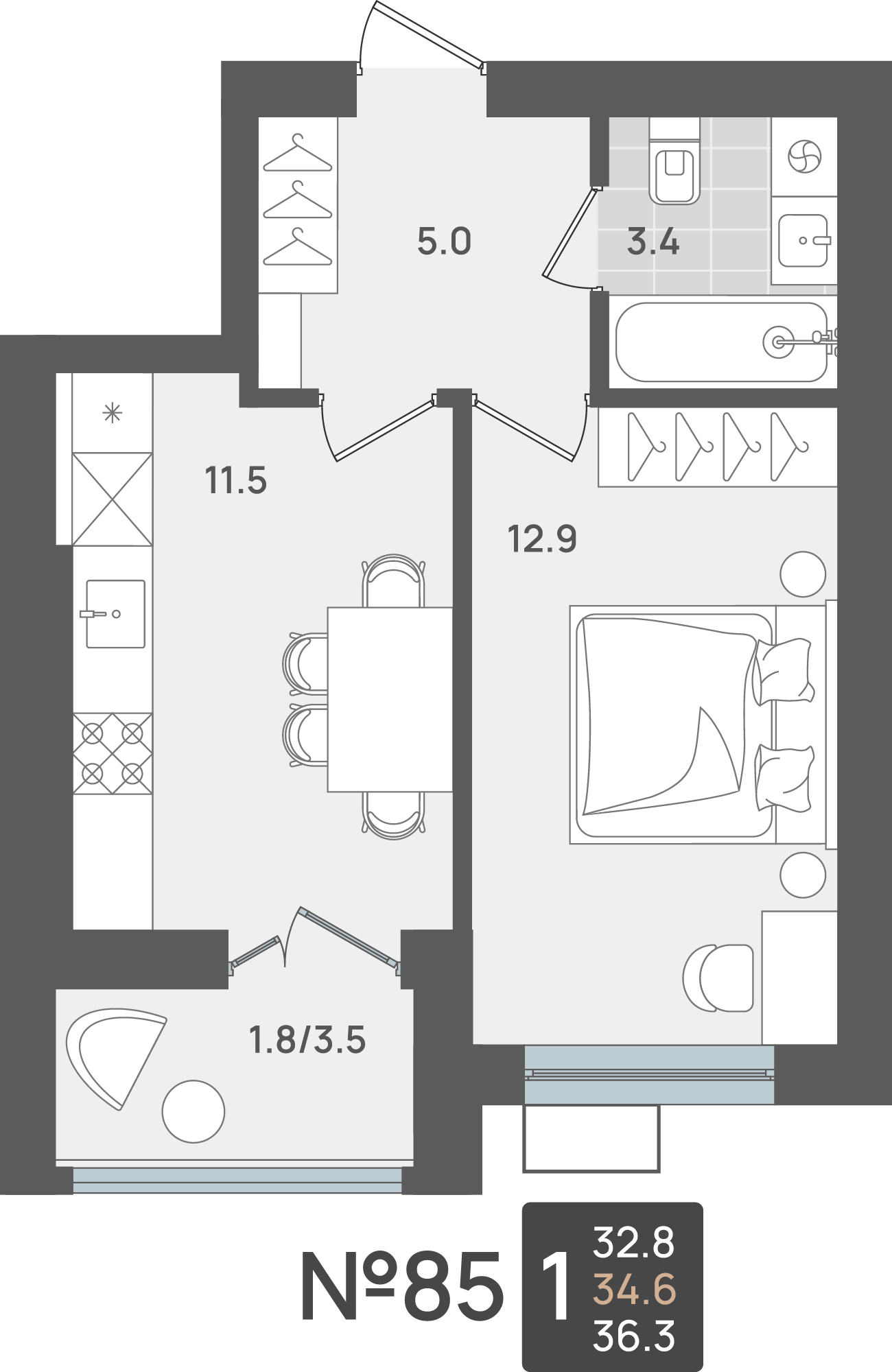 • Площадь - 34.60 м²