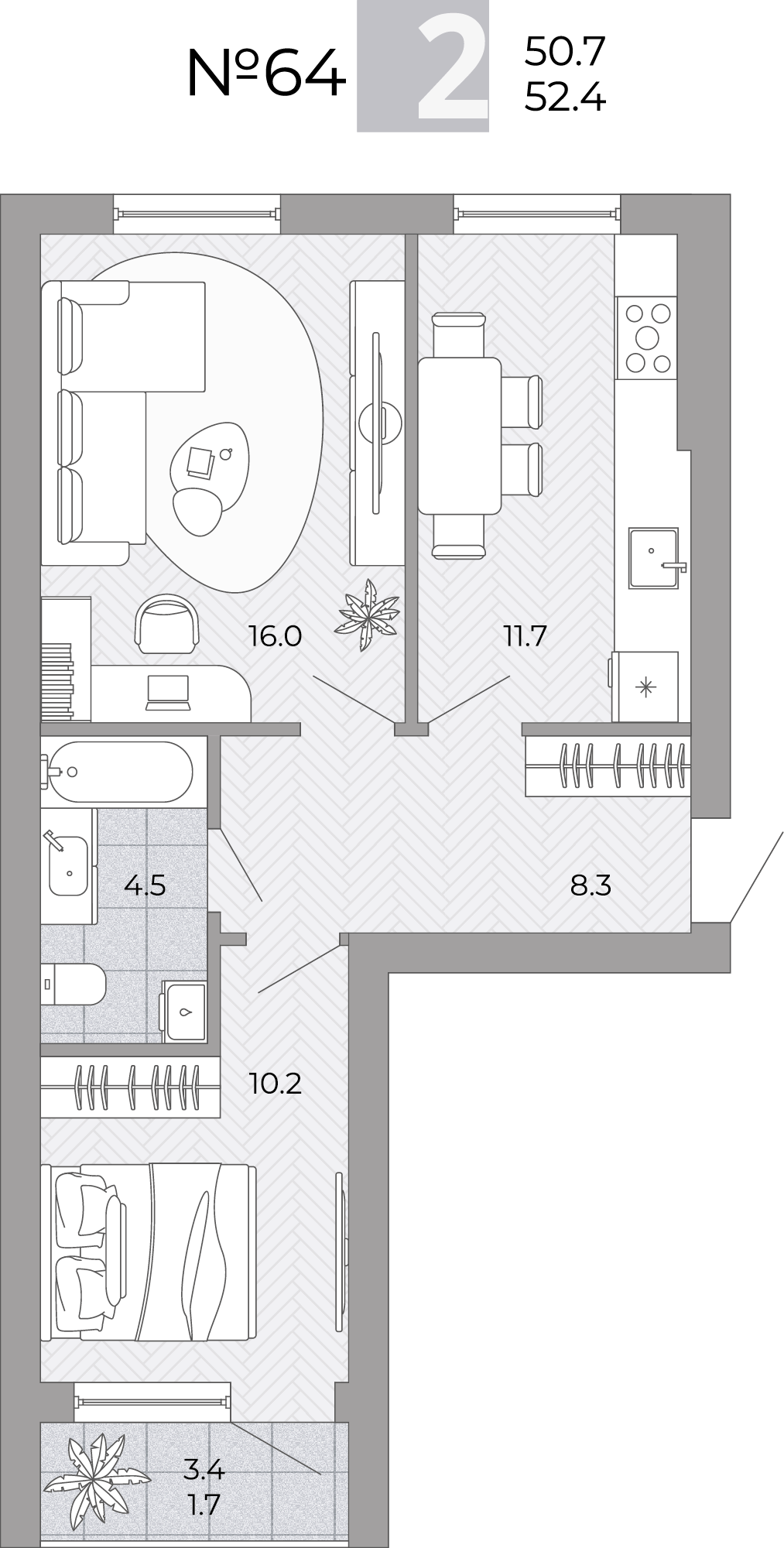 2–комнатная квартира