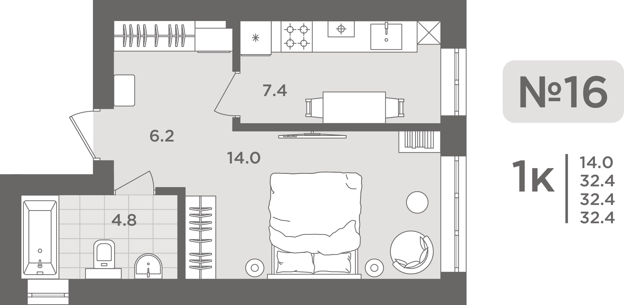 - Жилая площадь - 16.40 м²