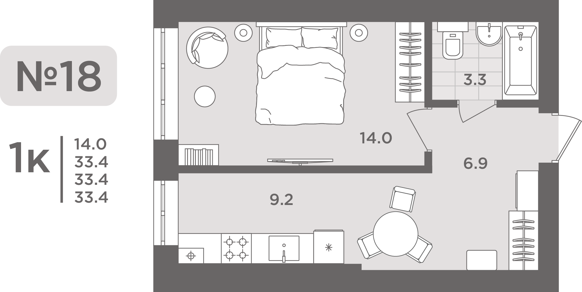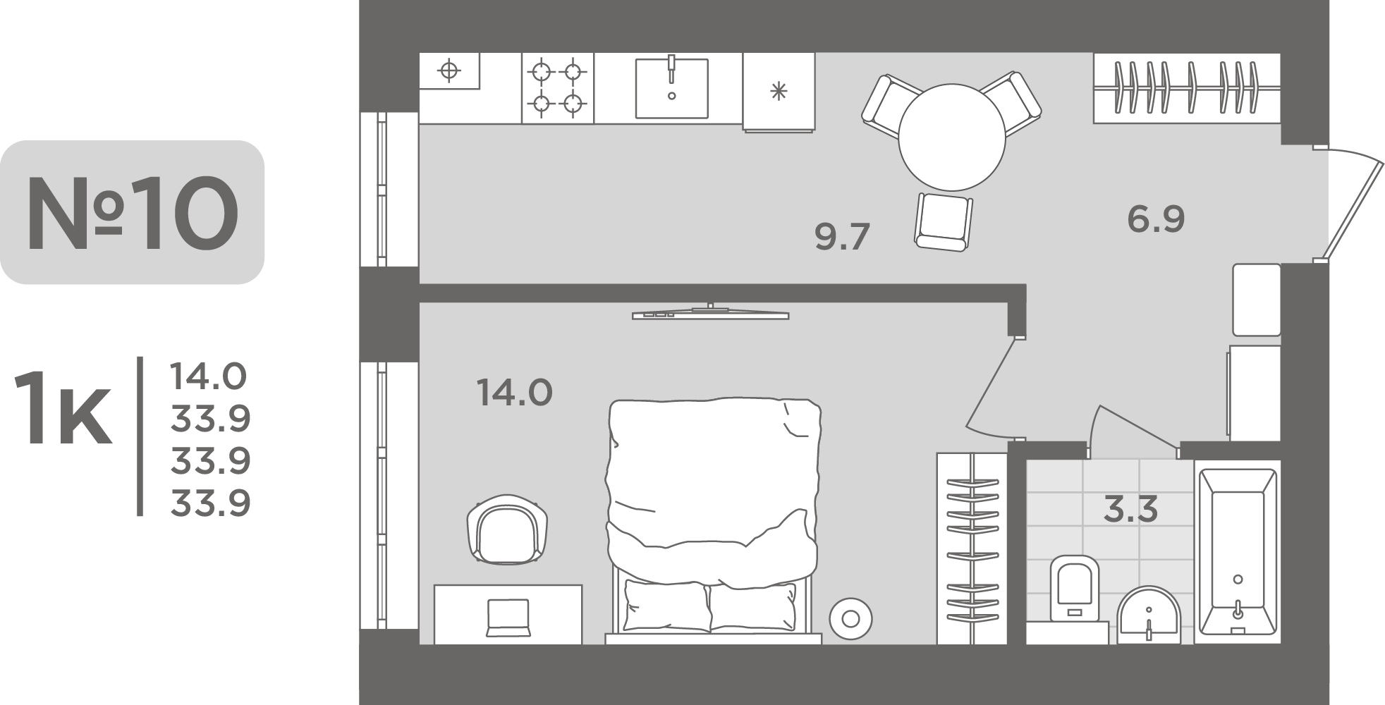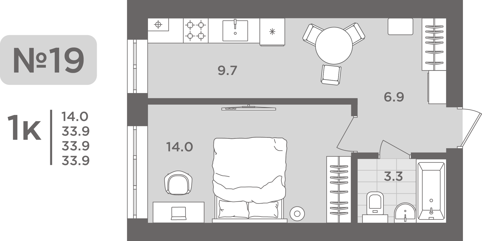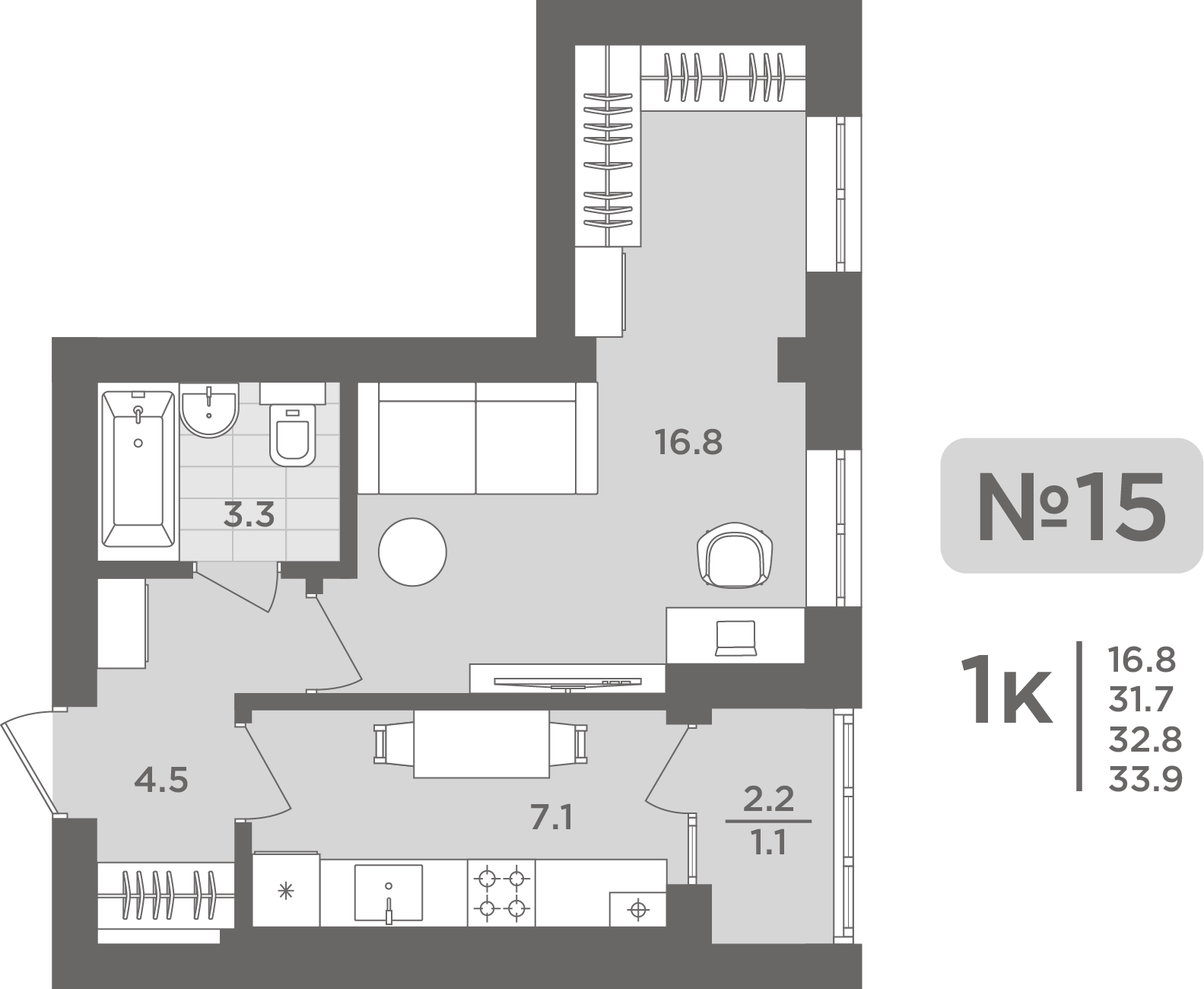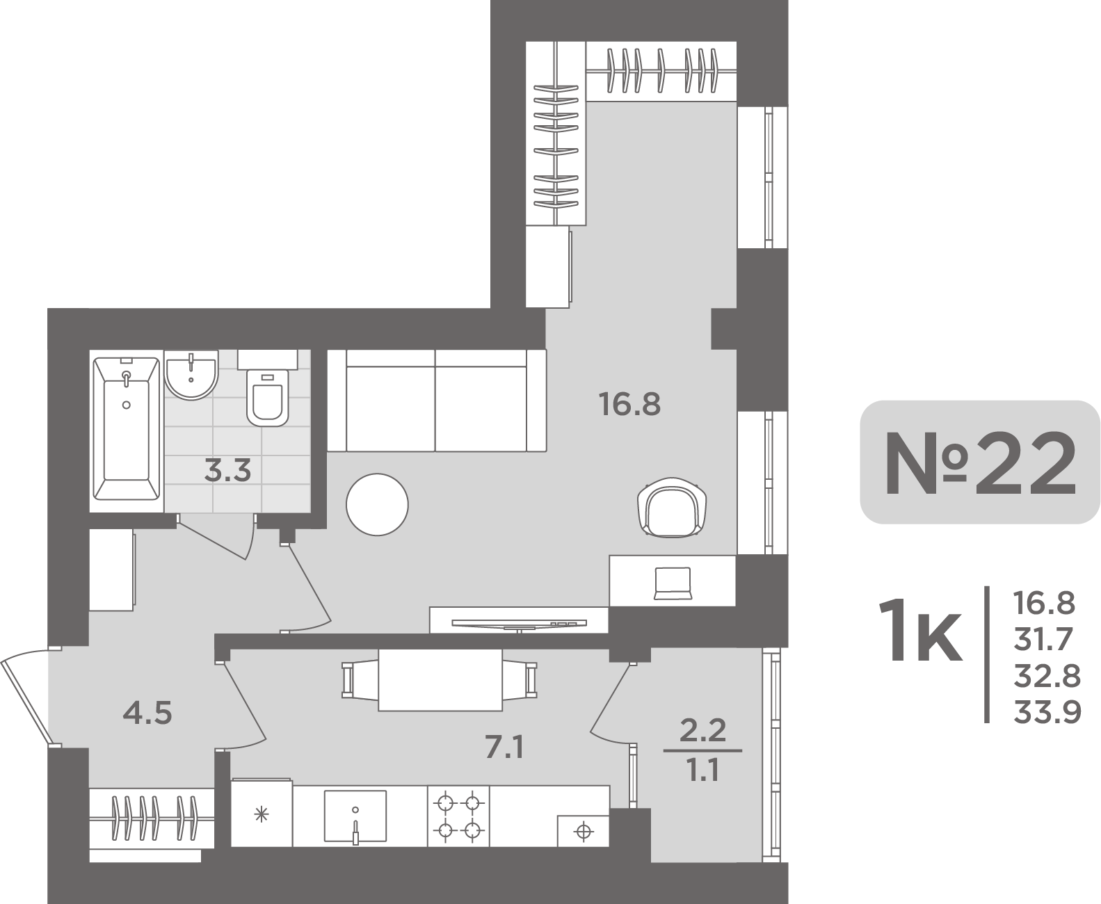 Подробнее- Площадь - 33.70 м²