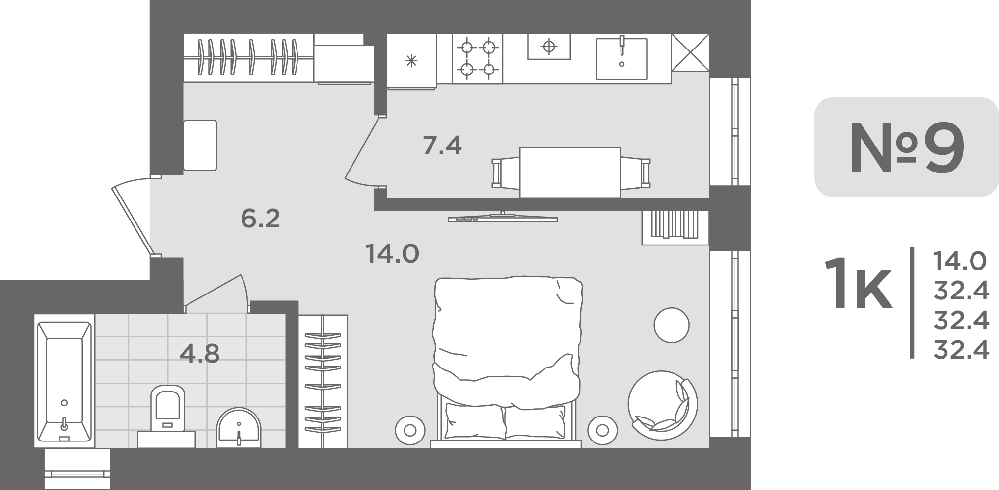 - Площадь - 9.60 м²