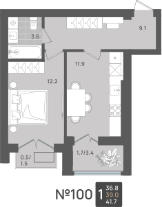 - Площадь - 39.00 м²