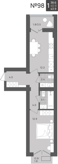 - Жилая площадь - 12.20 м²